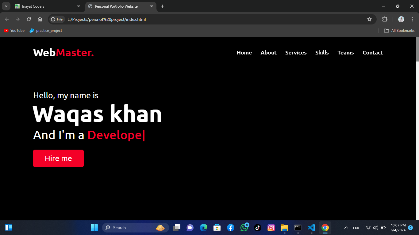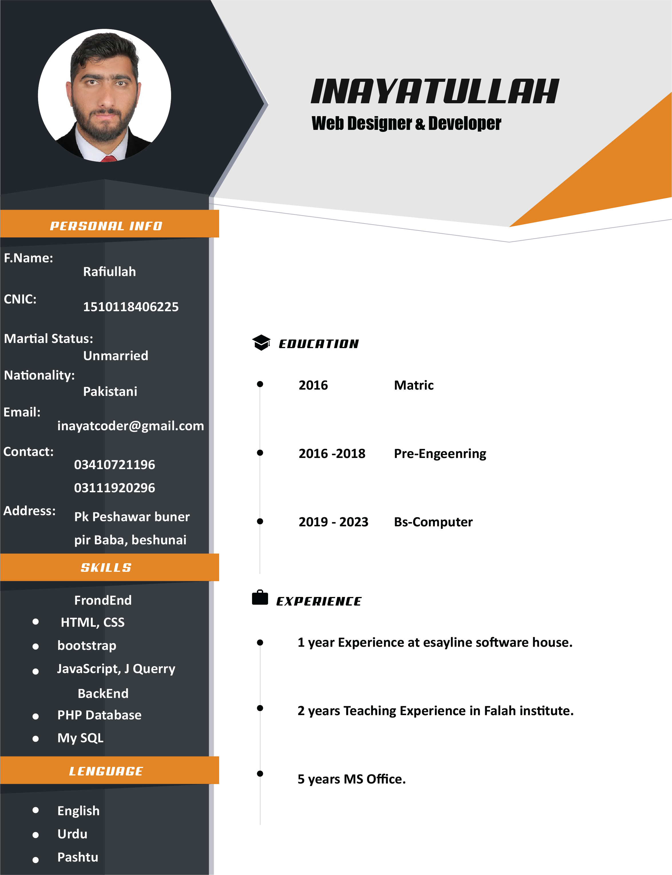 Contact MeHi, I'm Inayat, a frontend developer and designer. I specialize in creating responsive, user-friendly web interfaces using HTML, CSS, and JavaScript. With a passion for blending aesthetics with functionality, I enjoy building sleek, intuitive websites and applications. Always eager to learn and stay updated with the latest trends, I'm excited to bring new ideas to life and create impactful digital experiences.
